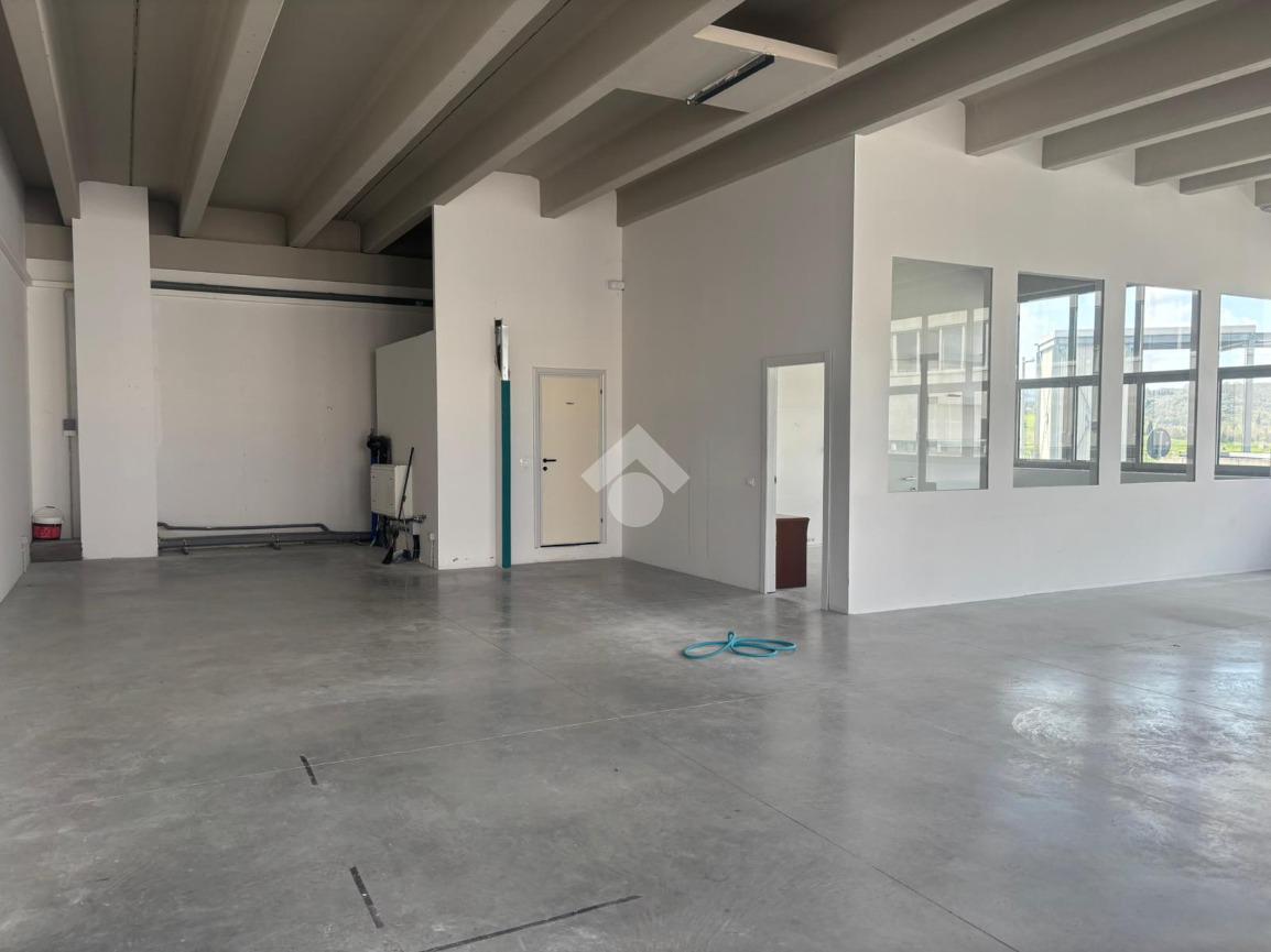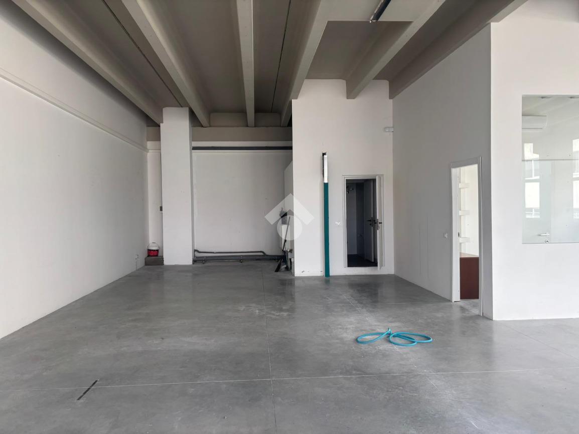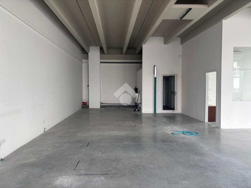Ampio ambiente open space finestrato e quindi ben illuminato adattabile a qualsiasi tipologia di attività. Nell'immobile è presente un piccolo ufficio completamente ristrutturato e il servizio igienico doppio con antibagno. Completa la proprietà un resede esterno equivalente a due posti auto